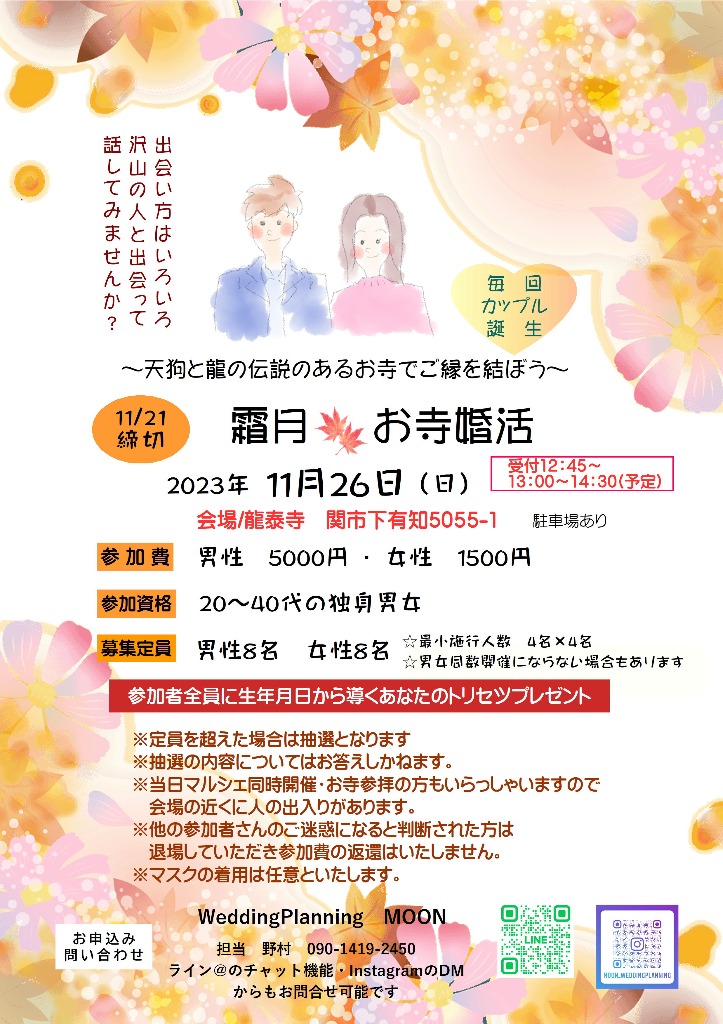 可児市の“月の舟”には、幅広い世代の男女が入会しており、結婚のお相手探しをしております。
